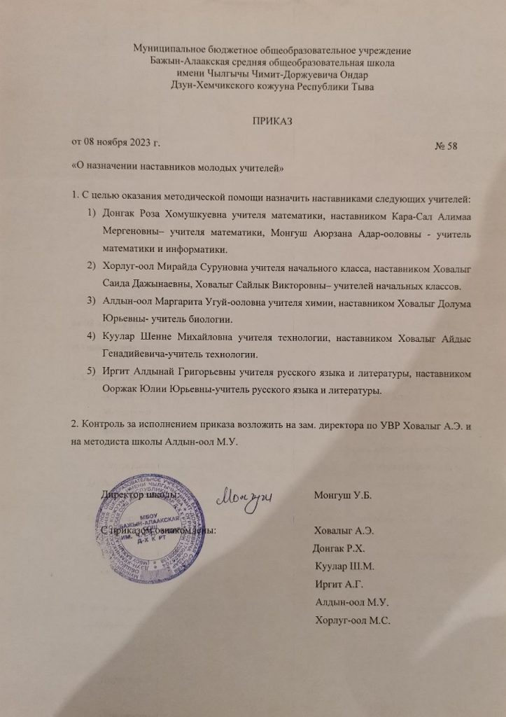 приказ УО от 15.09.2022 №22/1 «О внедрении целевой модели наставничества в ОО Дзун-Хемчикского кожууна» в 2022-2023 учебном годуСкачать