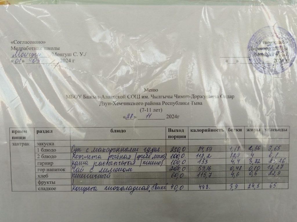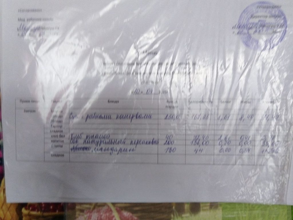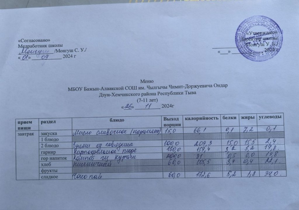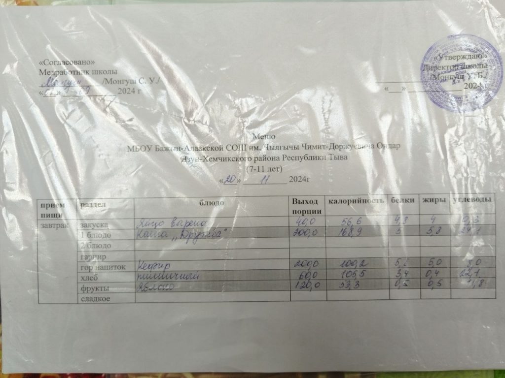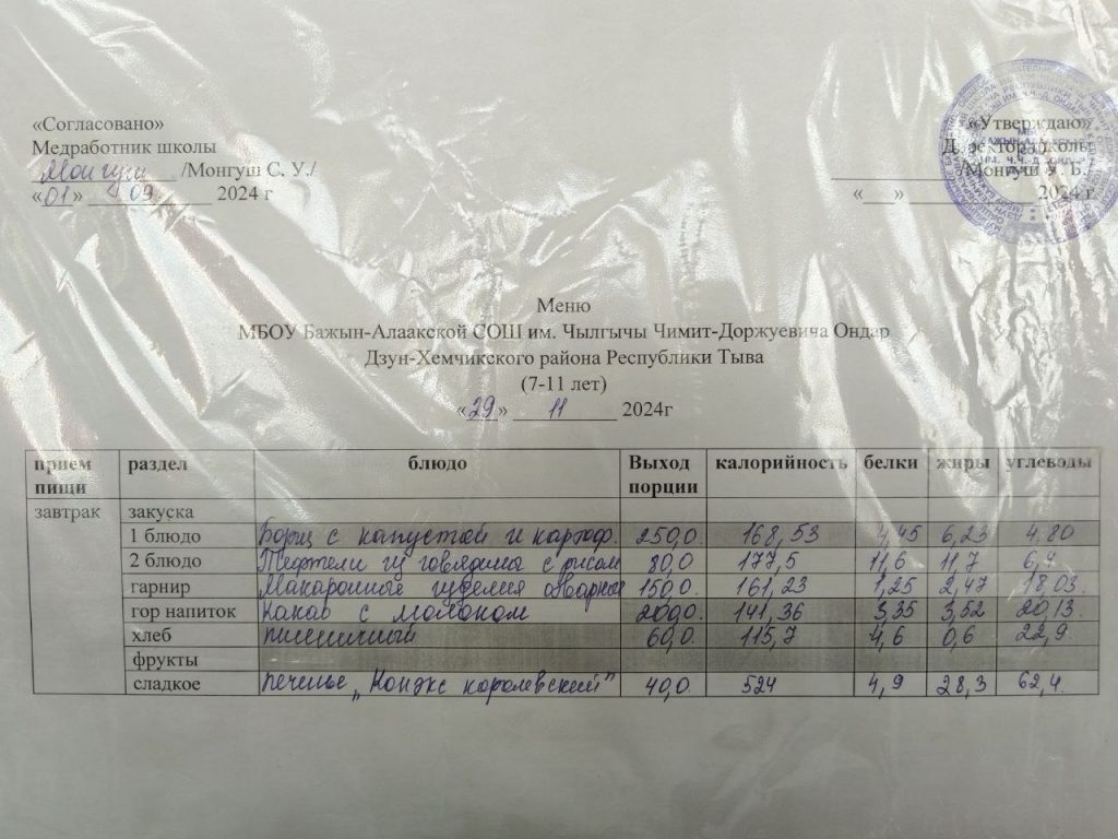 меню на 29.04