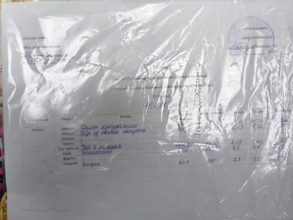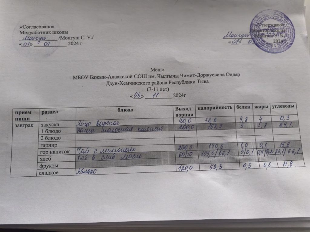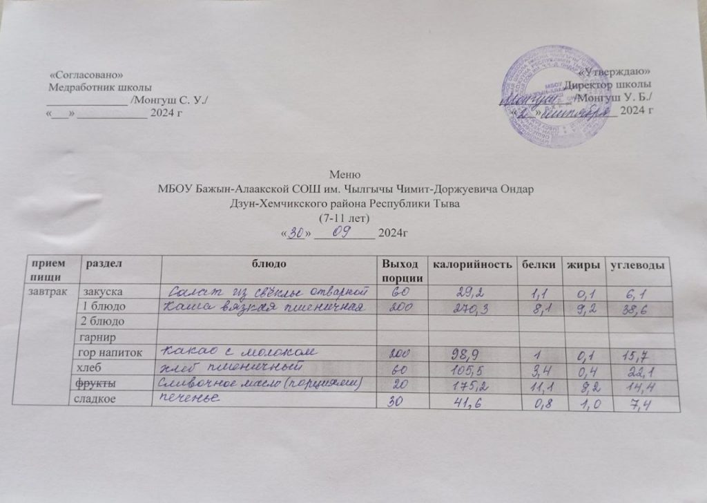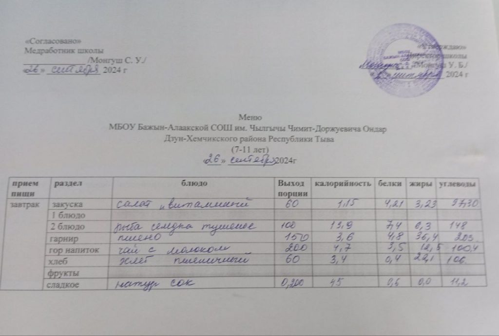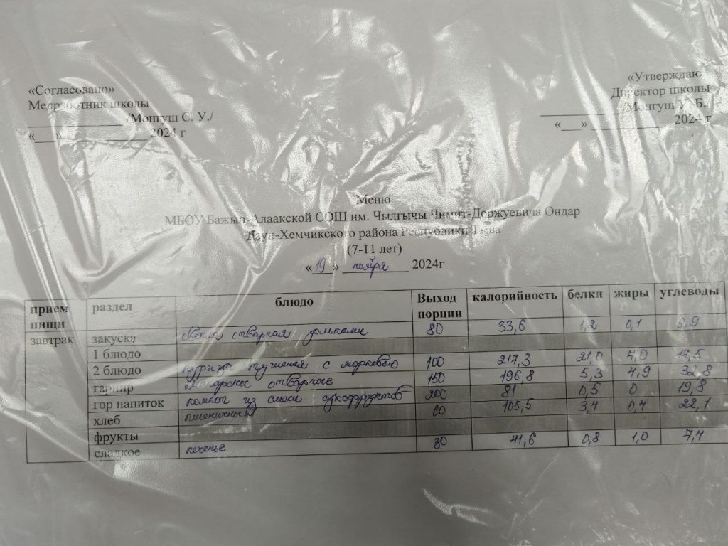 меню на 29.04