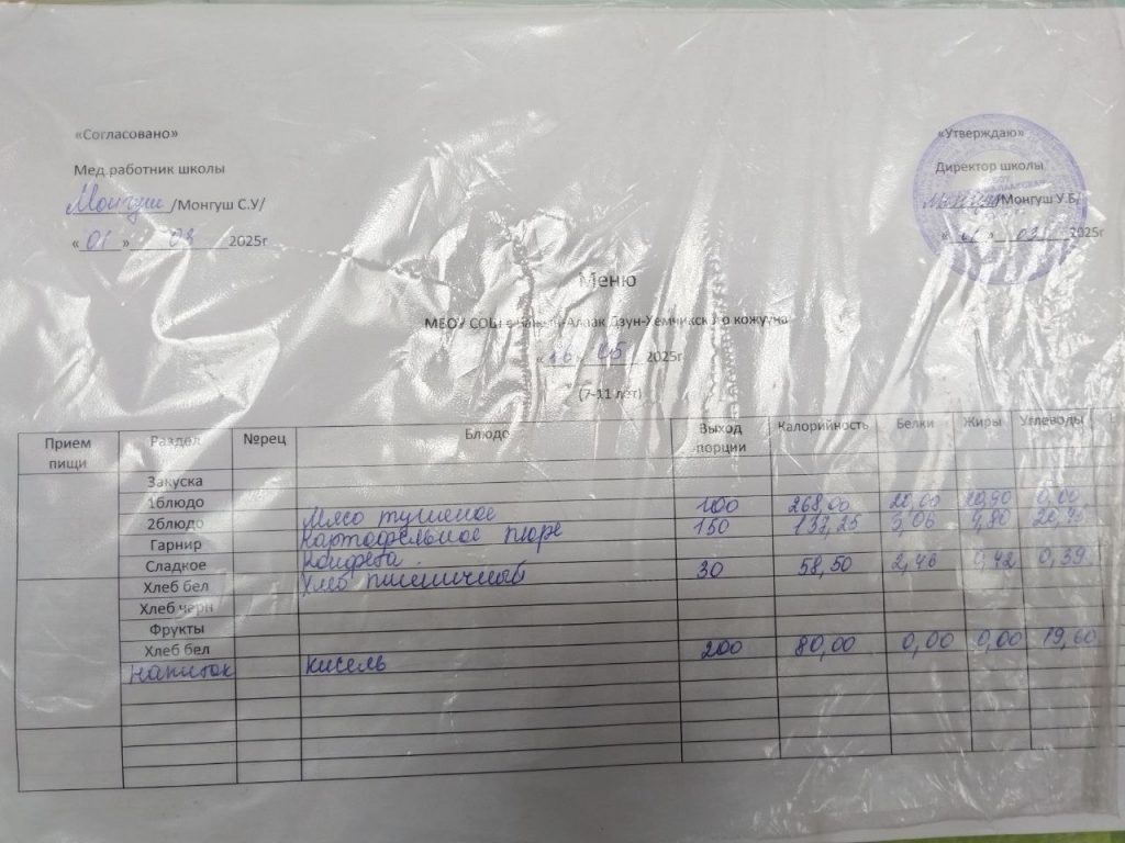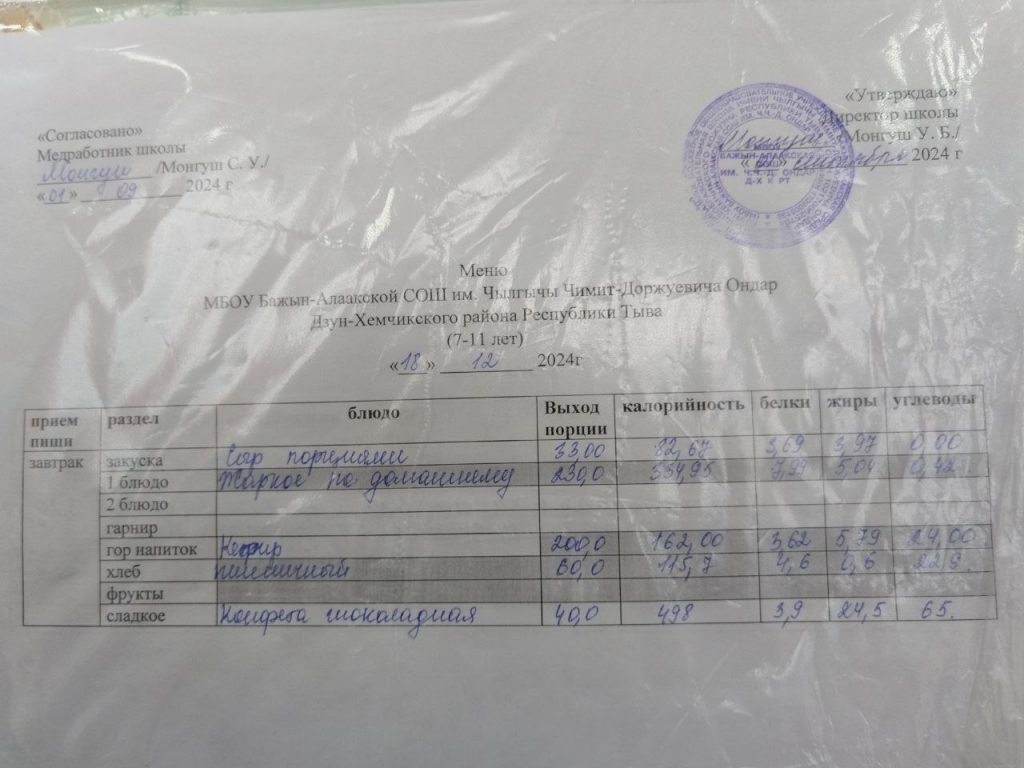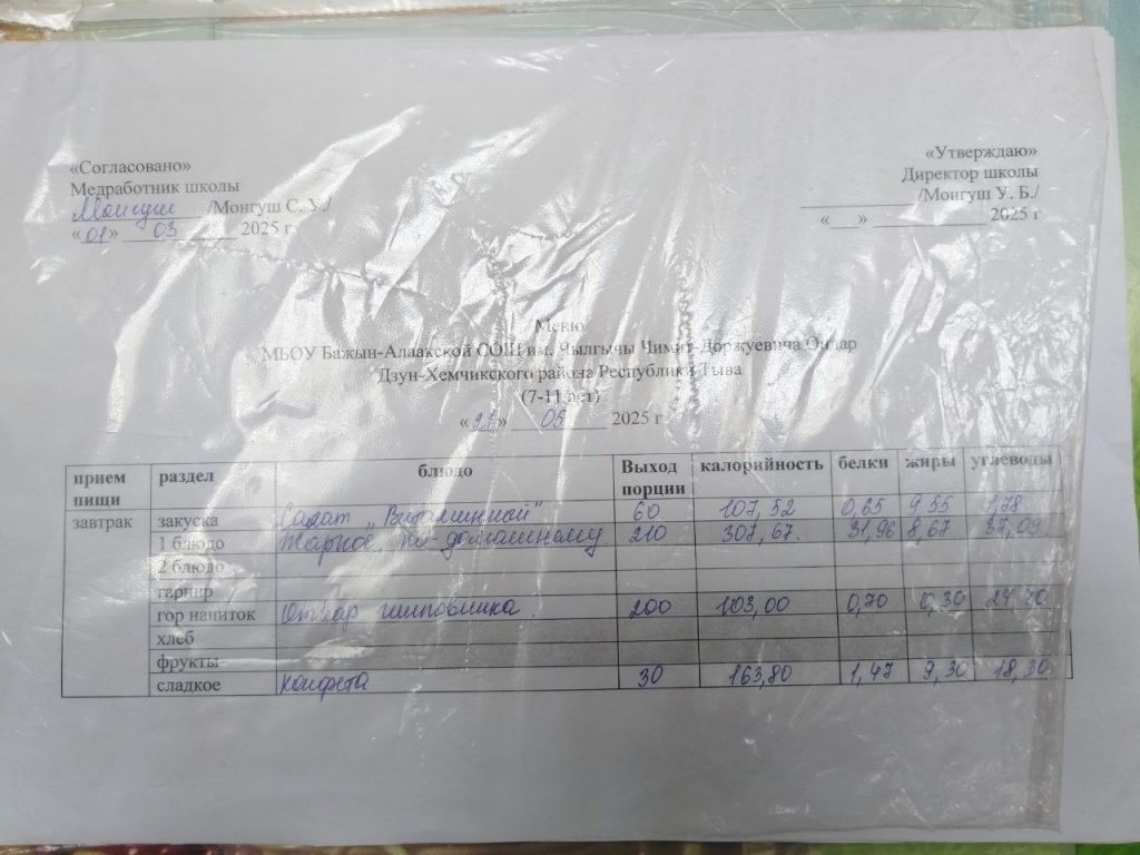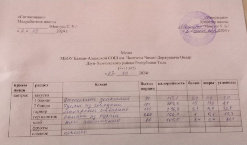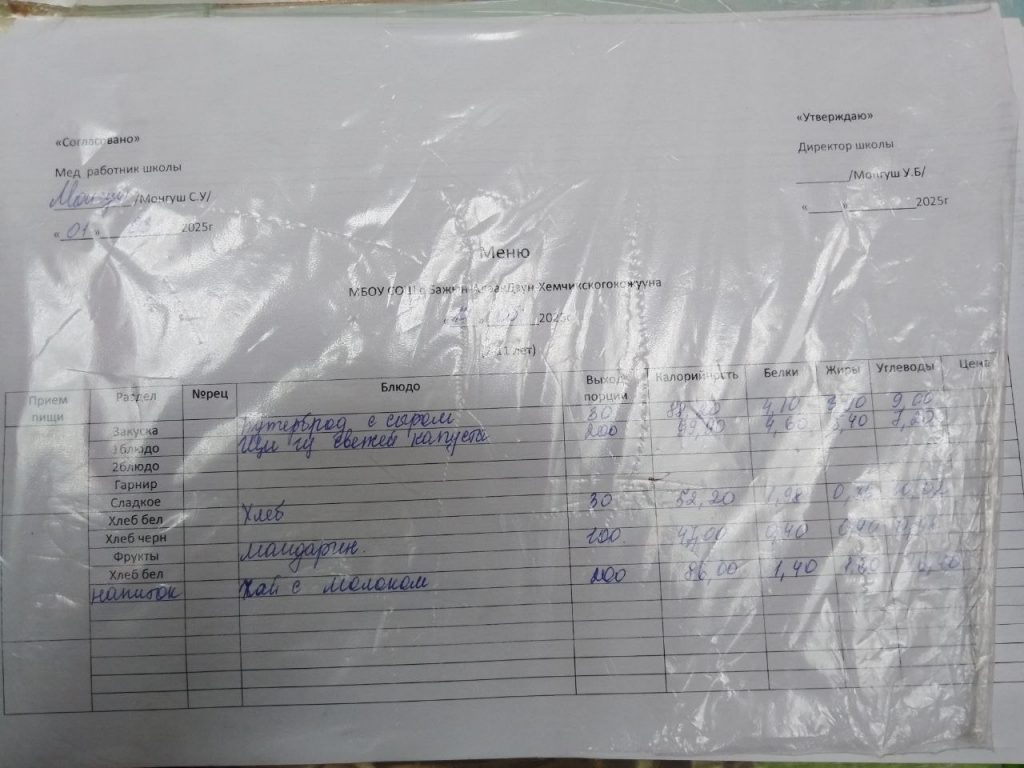 меню ежедневного горячего питания