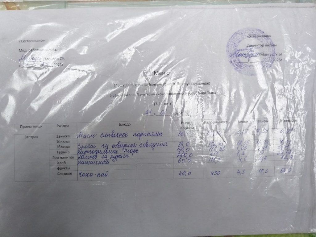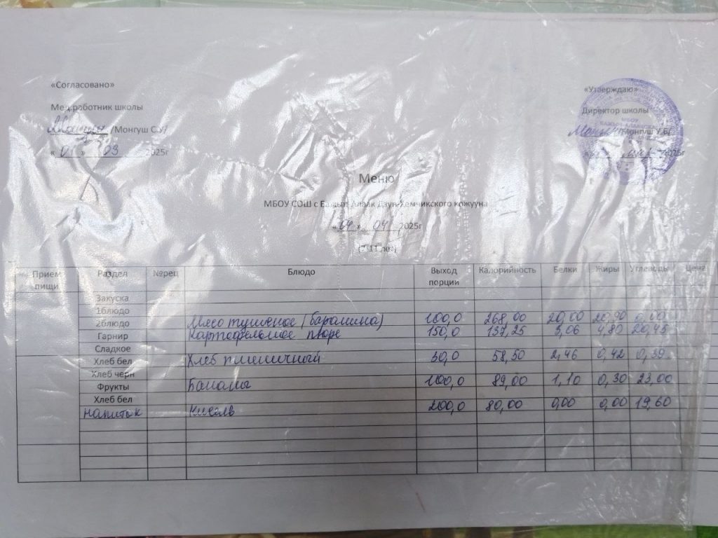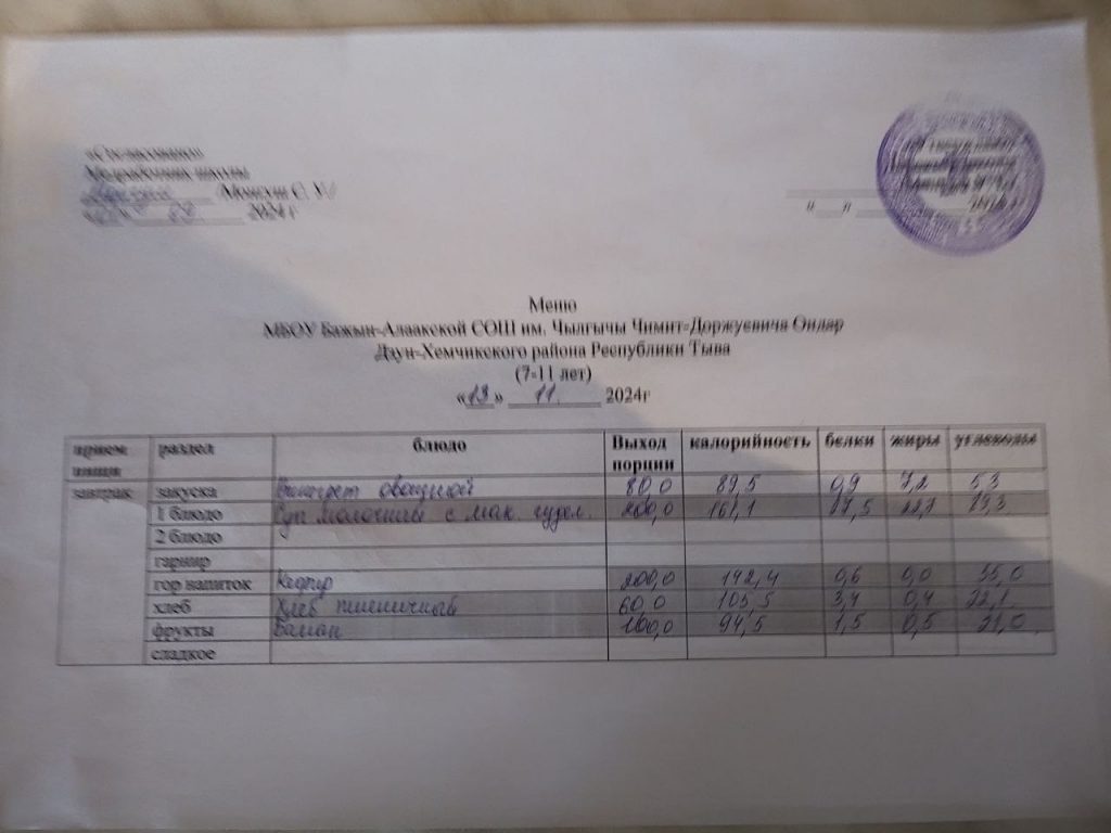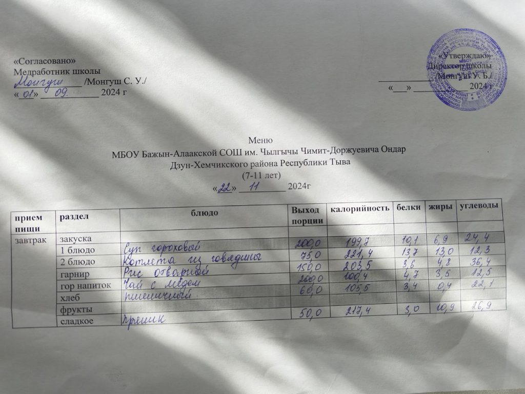меню ежедневного горячего питания