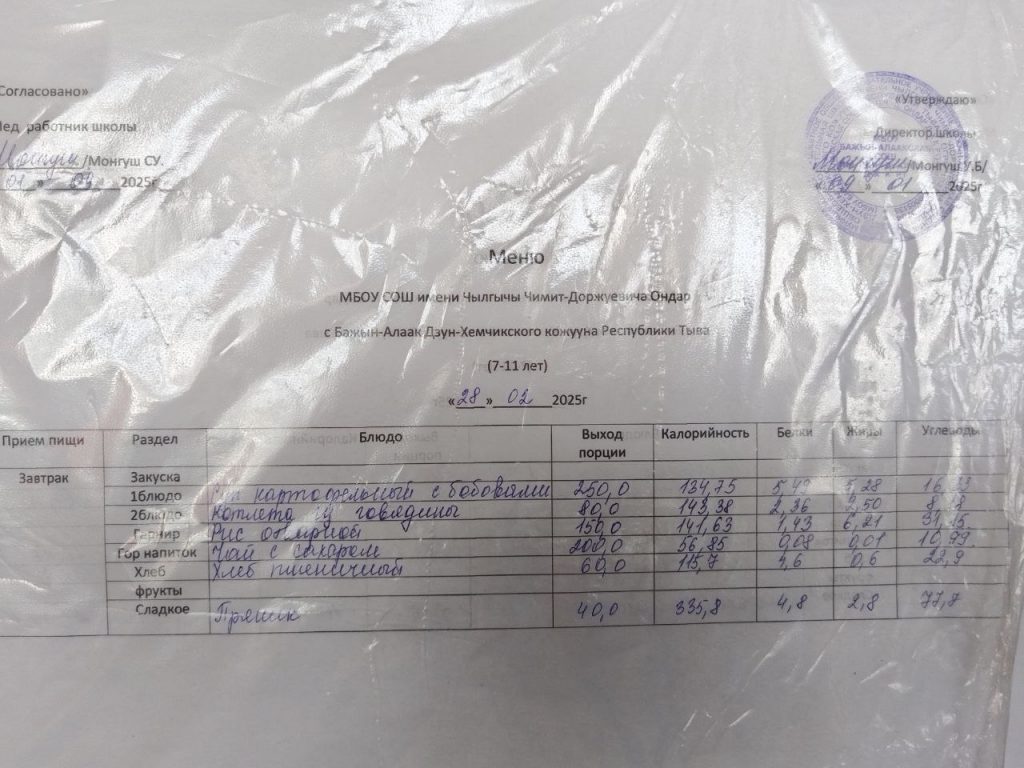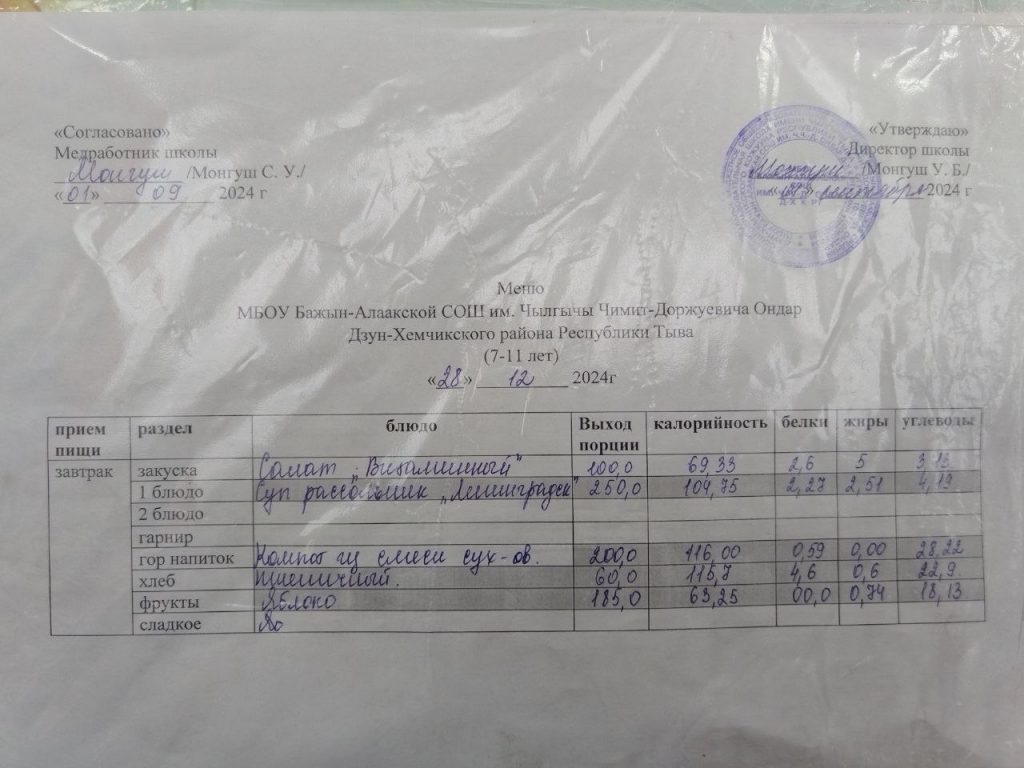 меню на 28.04