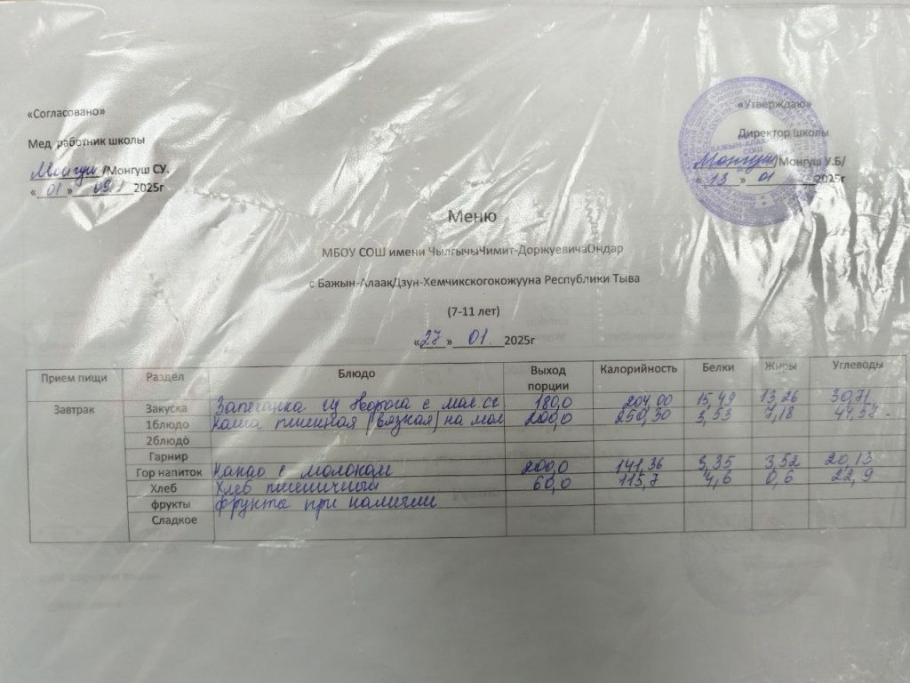 меню на 30.01